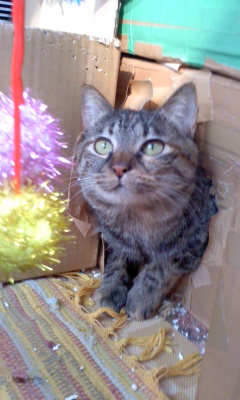特徴:顔は茶系のキジ、背中は三毛(サビ)